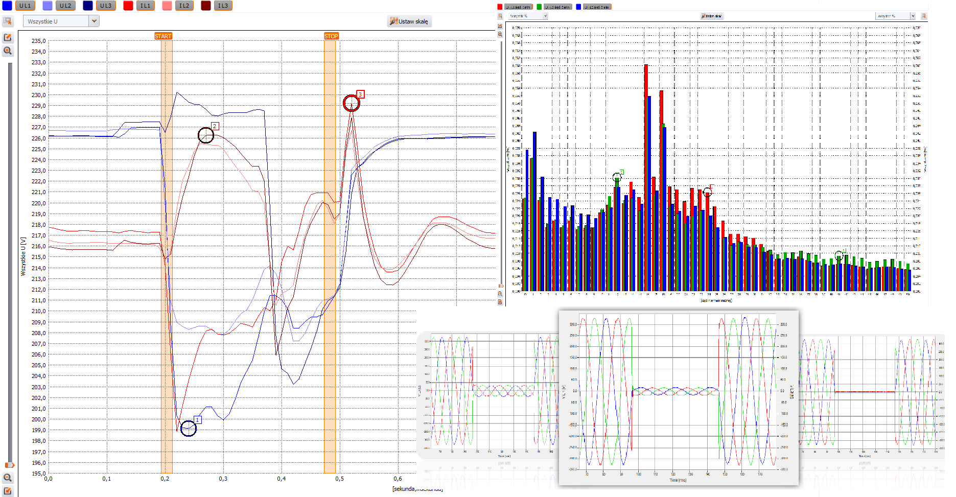 - pomiar czasów niejednoczesności zamykania i otwierania styków,